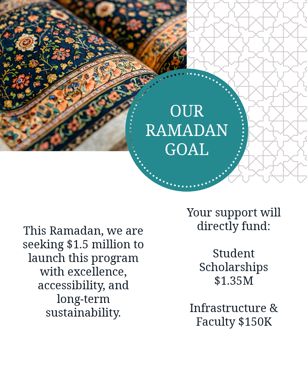 We are raising $1.5 million to sustain and strengthen this historic milestone. Darul Qasim accepts zakāt, which is distributed according to sharī’ah guidelines and allocated to student scholarships for those who are zakāt eligible.